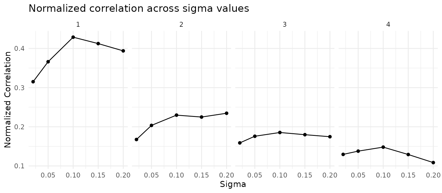 CoPro automatically selects the sigma that maximizes the CC1 normalized correlation. We visualize the normalized correlation across all sigma values and canonical components:
